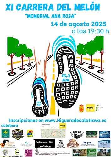La Carrera del Melón Higuera de Calatrava está organizada por el Ayuntamiento de Higuera de Calatrava y se celebrará el 14 de agosto de 2025.