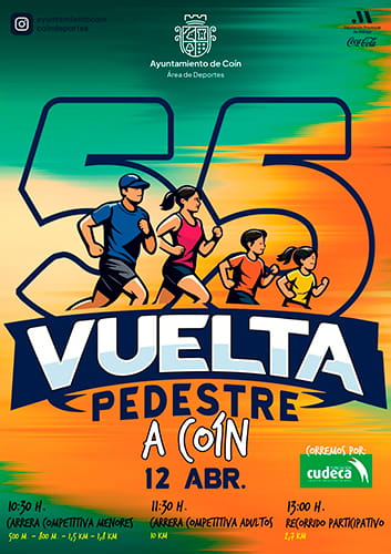 La Carrera Pedestre Coín está organizada por la Concejalía de Deportes del Ayuntamiento de Coín y se celebrará el 12 de abril de 2026.