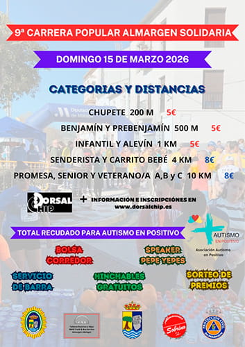 La Carrera Popular Almargen está organizada por el Ayuntamiento de Almargen y se celebrará el 15 de marzo de 2026.