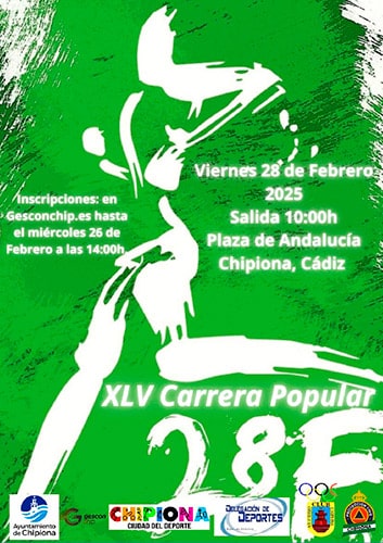 La cuadragesimoquinta edición que se celebrará el 28 de febrero de 2025, conmemorará la festividad de la Comunidad Autónoma Andaluza. La cita más veterana del calendario atlético chipionero está abierta a corredores de todas las edades y situará su epicentro en la calle Larga. Ese será el lugar desde donde los participantes iniciarán el circuito urbano que rodeará el municipio gaditano. El recorrido de 8.000 metros de longitud, estará homologado por la Federación Andaluza de Atletismo.