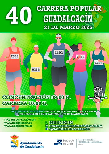 La Carrera Popular Guadalcacín está organizada por la Delegación de Deportes del Ayuntamiento de Guadalcacín y se celebrará el 21 de marzo de 2026.