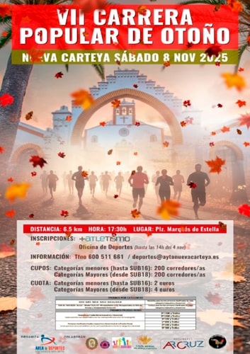 La Carrera Popular Nueva Carteya está organizada por el Ayuntamiento de Nueva Carteya y se celebrará el 8 de noviembre de 2025.