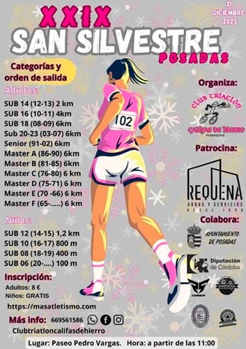 La Carrera San Silvestre Posadas está organizada por el Club Triatlón Califas de Hierro y se celebrará el 31 de diciembre de 2025.