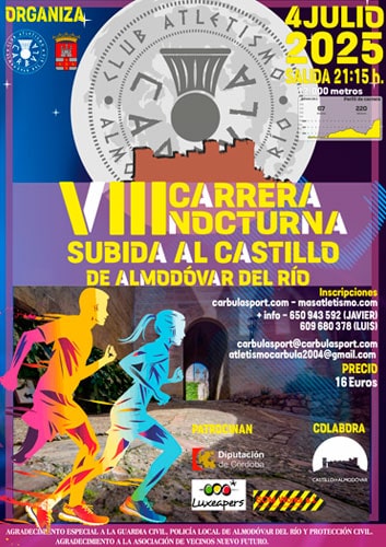 La Carrera Subida al Castillo Almodóvar del Río está organizada por el Club de Atletismo Cárbula Sport y el Ayuntamiento de Almodóvar del Río. La octava edición se celebrará el 4 de julio de 2025 y es de carácter nocturno.