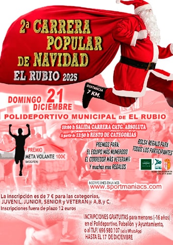 La Carrera Urbana El Rubio está organizada por el Ayuntamiento de El Rubio y se celebrará el 21 de diciembre de 2025.