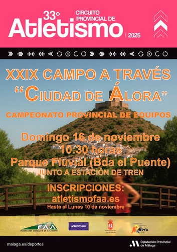 El Cross Álora está organizado por el Área de Deportes del Ayuntamiento de Álora y se celebrará el 16 de noviembre de 2025.