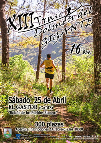 El Trail Dolmen del Gigante El Gastor está organizado por el Ayuntamiento de El Gastor y se celebrará el 25 de abril de 2026.
