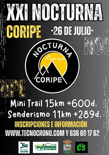 El Trail Nocturno Coripe está organizado por el Ayuntamiento de Coripe y se celebrará el 26 de julio de 2025.